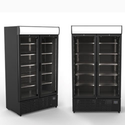 Spara 35%2206-BFD0024Drickakyl svart med 2st glasdörrar och LED Belyst reklampanel, 1140 liter, Mått: 1200x740x2145mm