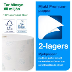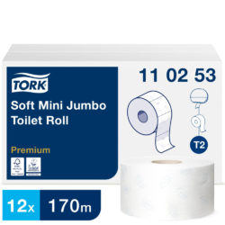 Spara 20%2256-511283Toalettpapper Tork T2 Premium Mini Jumbo 2 lager extra mjukt, 170m/Rulle, 12st Rullar/Frp