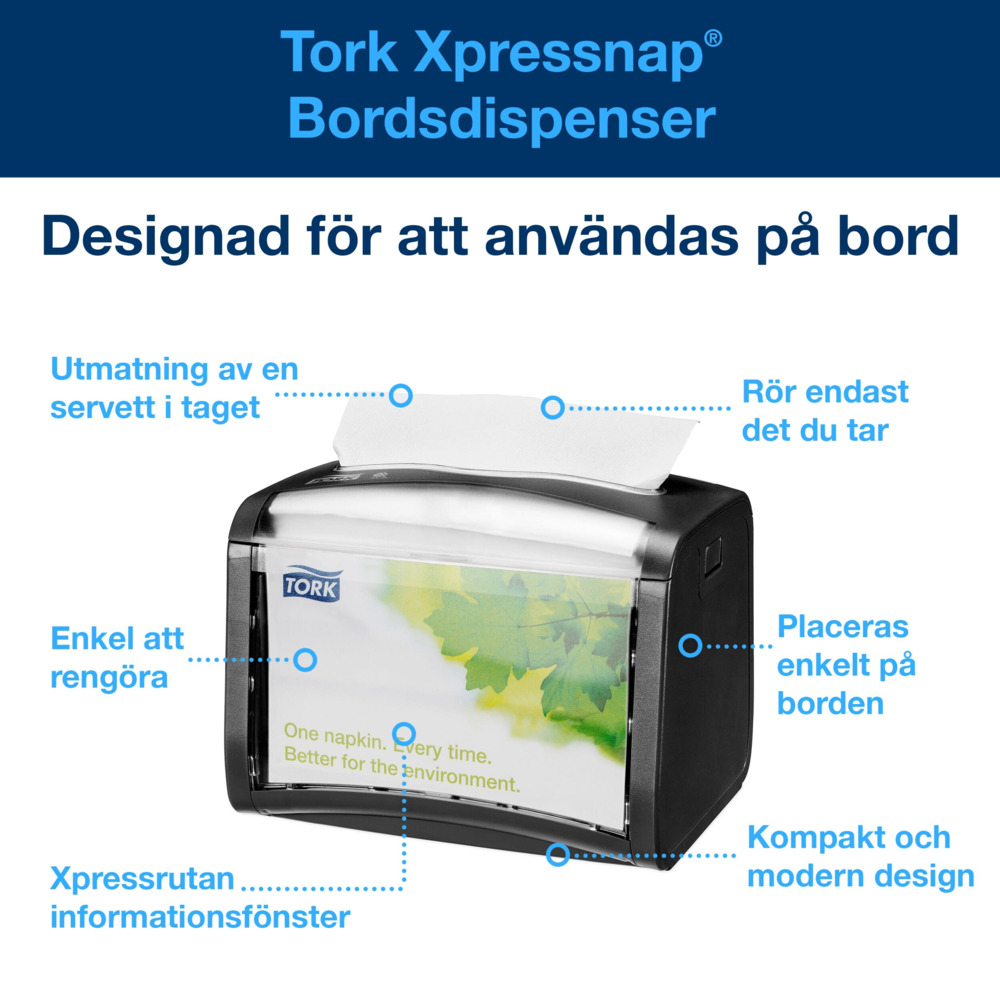 Minska förbrukningen när du tillhandahåller servetter vid bordet på restauranger med begränsad betjäning med vår Tork Xpressnap® Bordsdispenser.