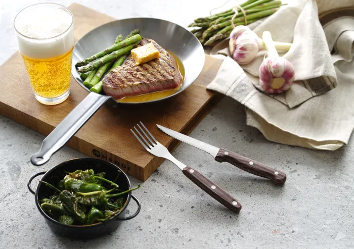 Steakkniv kombinerar slitstarkt rostfritt stål med ett bekvämt ABS-handtag, vilket kompletterar den matchande stekgaffeln för en koordinerad bordsdukning.