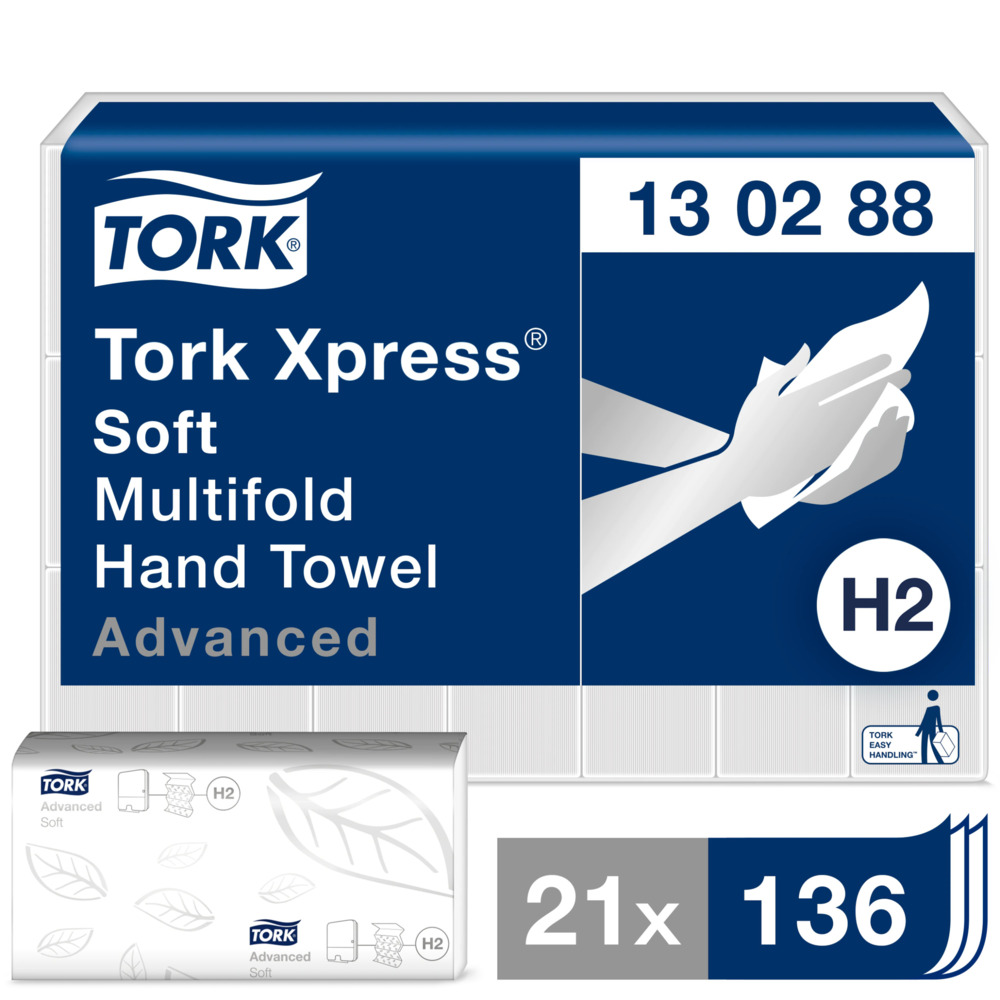 Handduk Tork Xpress Mjuk Multifold H2 Advanced 2-lag vit grå dekor, Mått: 320x210mm, 21st buntar/Frp