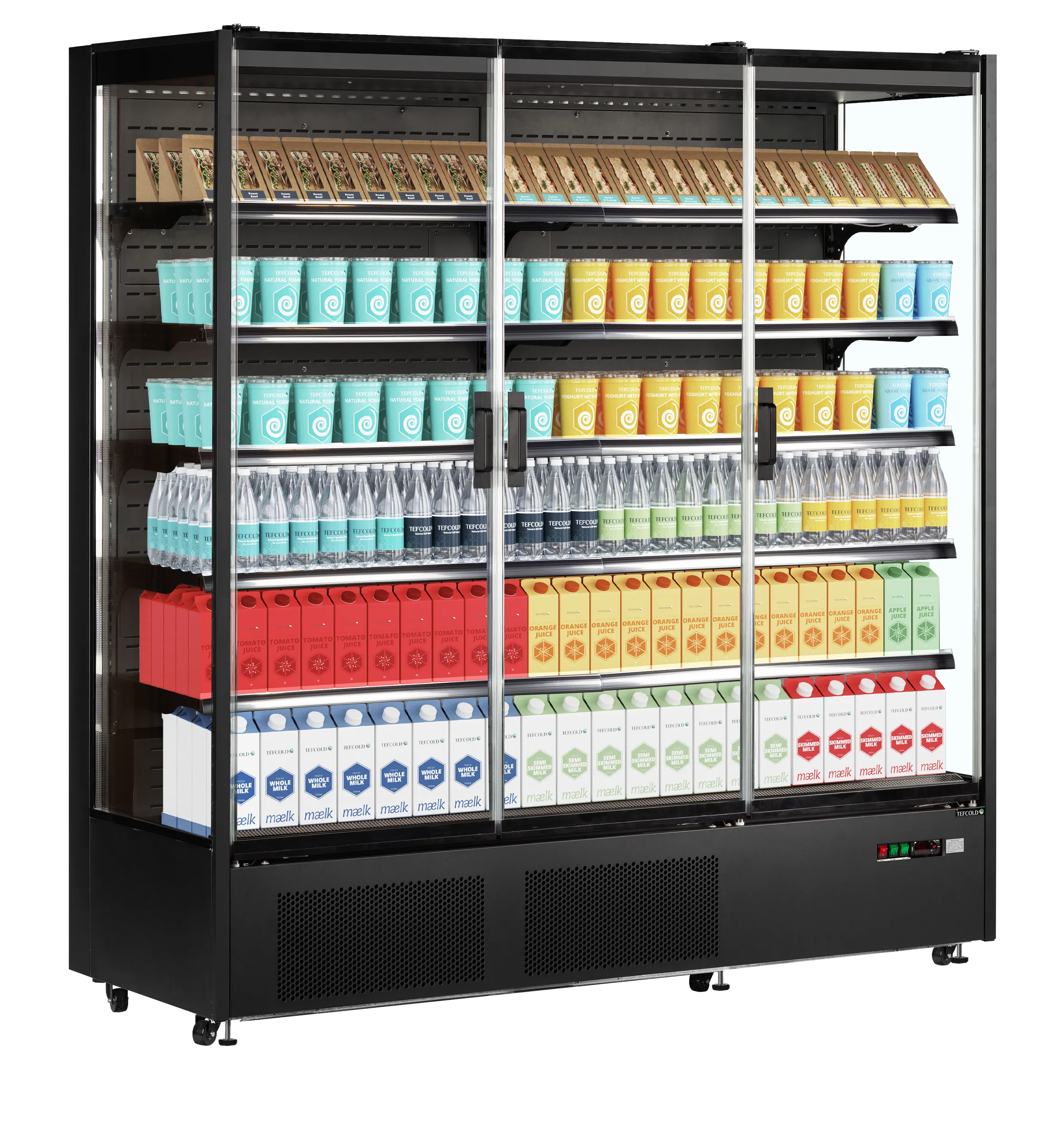 Svart multideck-kyl med ramlösa glasdörrar