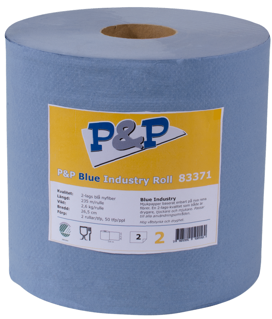Torkrulle Industriduk Big P&P. 2-Lags Nyfiber & returfiber, 370mm Bredd, 400m/Rulle