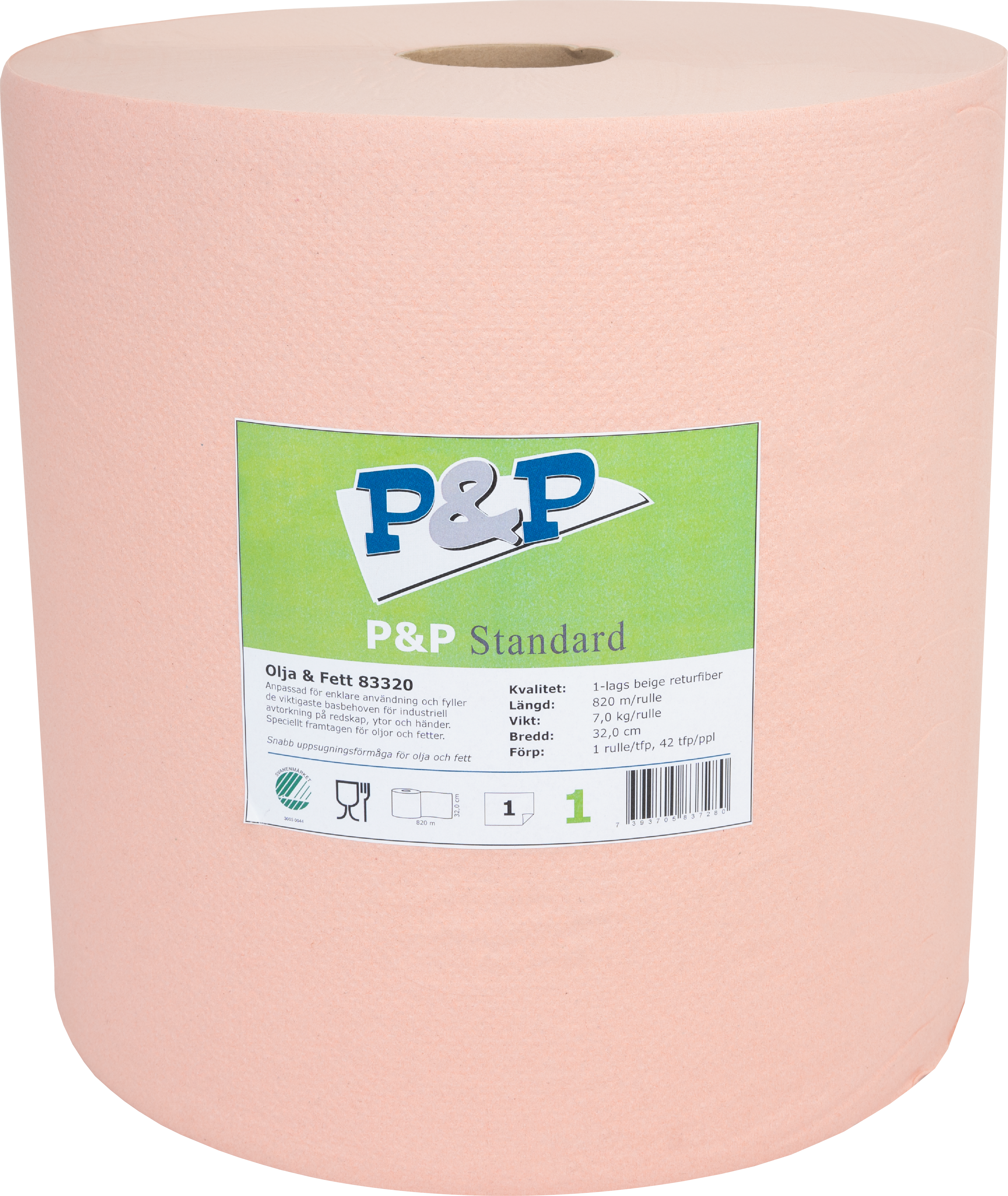 Torkrulle Olja & Fett P&P. 1-Lags Returfiber, 320mm Bredd, 825m/Rulle